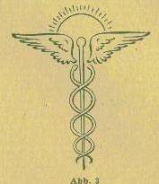 Oben eine geflügelte Sonne, daran anschliessend einen Stab, um den sich zwei Schlangen von unten nach oben winden. Dies ist nicht nur eine schematische Zeichnung; der Mensch, dem solches alles selbst bewusst geworden ist, erlebt fühlt und schaut in sich die Gebilde tatsächlich (Abbildung 2 und 3) |